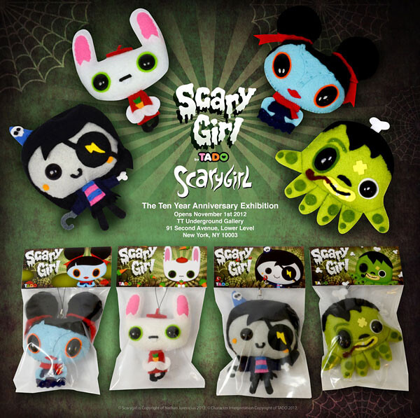 澳洲怪獸角色創作藝術家Nathan Jurevicius 預計2012年11月11日在紐約的 Toy Tokyo 的Underground Gallery 舉行 Scary girl 10週年展覽,各個藝術家或設計師等等將以Scary girl 當中出現的角色人物創作不一樣風格的作品,預計將有超過100位參加的藝術家、設計師等等創作者,官網名單有 Alex Mcleod & Krystle Tabujara, Akiko Ito, Akinori Oishi, Aaron Stewart, Ajee, Apak, Abe Lincoln Jr, Arkie, Andrew Bell, Ania Tomicka, Ashley Aly Bryce, Alicia Leao, Aaron Leighton, Andrea Kang, Allison Cole, Arv Slabosevicius, Adrienne Marcella Kammerer, Austin Power, Bored Inc, Beck Wheeler, Bwana Spoons, Bubi Au Yeung, Bibbe Hansen, Brandt Peters, Ben Newman, Bev Hogue, Darcel Disappoints, Diavù, Destroy You, Craig Knowles, Chikuwaemil, Erica Calardo, Emily Bricker, Emiline Allen, Evoker, Erin Bushelman, The Beast Brothers, Frank Kozik, Gemma Correll, Gary Ham, Gabe Gill, Hyein Lee, Haze XXL, HAZ, Itokin Park, Junko Mizuno, Jesse LeDoux, Jesse Hernandez, Jon Burgerman, Joshua Ben Longo, J★RYU, MAD, Jermaine Rogers, Jillian Clark, Juan Molinet, Milo, Joe Ledbetter, Javier Gonzalez Burgos, Jeremyville, Jeannie Phan, Kozyndan, Kathy Olivas, Karen Kuehn, Lamour Supreme, Lou Pimentel, Leah Chun, Luke Chueh, Lana Crooks, Lunartik, Luke Temby, Luke Rook, MARKA27, Mark Gmehling, Motomichi Nakamura, Melinda Josie, Misery, MCA, Matthew Langille, Mishka, Miki Mottes, Mako Fufu, Matthieu Dutheil/K.Olin tribe, Nicholas Aoki, Nahum Ziersch, Patrick Ma, Pelon Cho, Patricio Oliver, Paul S O’Connor, Paul Shih, Peter Kato, Roque Ballesteros, Rolito, Ryan ‘Downtimer’ Alm, Ryan Matthew Cohn, Rebecca Adams, Remy Poisson, Rilla Alexander, Ryan Cox, Rob Reger, Ryan Roberts, Sonni Adrian, Steve Manale, Sam Fout, Steve Alexander, Robert Duggan, Scott Tolleson, Steve Wilson, Salvador Kingman, Sass, Shaun Tan, Salamander, Shawn Smith, Selena Wong, Scott Wetterschneider, Sabina Hahn, TADO, Touma, Tokyoplastic, Thomas Han, Tamar Moshkovitz/GO-TAM, Tara McPherson, Uman, Vitas Jurevicius, We Kill You, ZombieKid Yuck等等。
