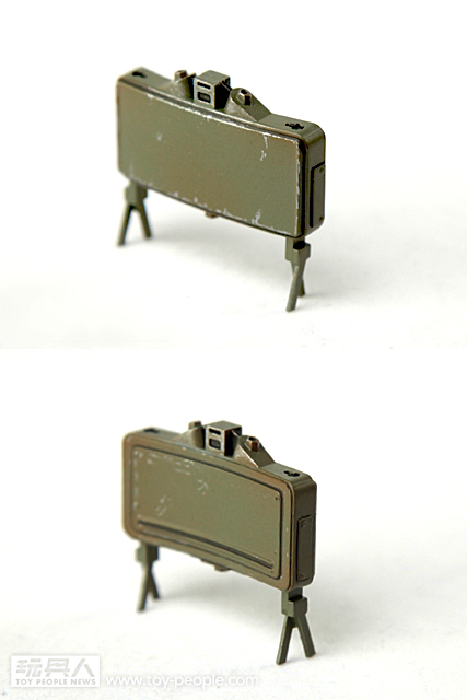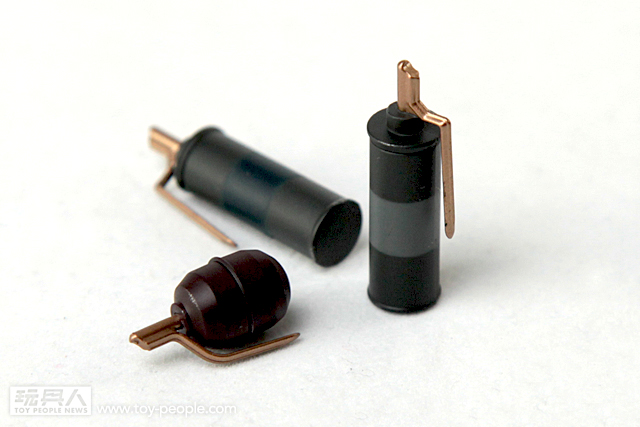 ▼ M18A1闊刀地雷(M18 Claymore anti-personnel mine / 克萊莫耳人員殺傷地雷),1/6 比例造型雖小,但依舊使用多重零件製作,並施以舊化質感。闊刀地雷是美軍於1960年代越戰時期所研發的定向人員殺傷地雷,全套M18A1闊刀地雷包含了一具引爆器、地雷本體以及引線。內容包含了約700粒鋼珠以及約1.5磅的C-4 塑膠炸藥。