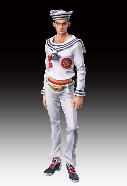 Di molto bene的招牌雕像傳說系列近日公開第28彈—JOJO冒險野郎新作主角東方定助。以奇特水手服造型登場的東方定助,雕像作品線條相當優異,完美再現荒木老師的奇特風格。搭配同系列先前推出替身一起陳列才是最過癮的蒐藏啊!本商品高約17公分,日幣參考售價約6090圓,預計2013年3月推出提供大家參考!