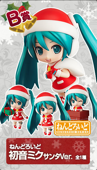 以黏土人聞名的日本玩具公司GOOD SMILE COMPANY,近日公開將推出「初音冬季版抽抽樂!(グッスマくじ 初音ミク 2012 Winter Ver)」,收錄超多初音迷一看就會瘋狂的夢幻逸品。已公開A賞是高達30公分的大型初音黏土人、B賞是超可愛的初音聖誕版(10公分高),可以擺出送禮、爬煙囪的聖誕老人動作、C賞是6.5公分公仔共三款、D賞是特製靠墊共三款、E賞是桌曆與文件夾三款、F賞是特製6款吊飾、G賞摺紙公仔六款、最後一賞是18公分高聖誕版初音布娃娃。而雙重中獎則是集滿5張籤即可參加3D原創海報抽獎!本次預目前僅公佈12月4日起於日本全家便利商店開抽,其它通路則後續再陸續公開,每抽800日圓,有去日本的朋友別忘記試試手氣啊!!!
