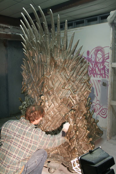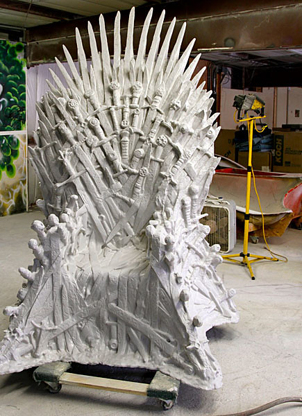 冰與火之歌是由美國作家喬治·馬丁所著的史詩奇幻小說,故事當中維斯特洛上的七大王國彼此征戰,互相爭奪Iron Throne 鐵王座,由HBO運用高成本的電影預算拍攝成電視劇集,已經在HBO上演兩季了,這次在think geek看見有美製作公司將劇中出現的鐵王座道具重現製作販售,有看HBO冰與火之歌的朋友們必會有感覺,尺寸高約7尺2寸寬約5尺5寸,售價約美金29,999.99,有興趣的玩具人可以前往出處連結參考。