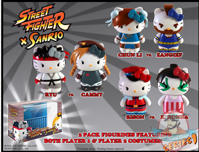 Sanrio Hello Kitty × Street Fighter PVC Figure 每個角色高約2.5吋(6.35公分),單套雙人組合參考售價14.99美金,三套雙人組合參考售價44.99美金。