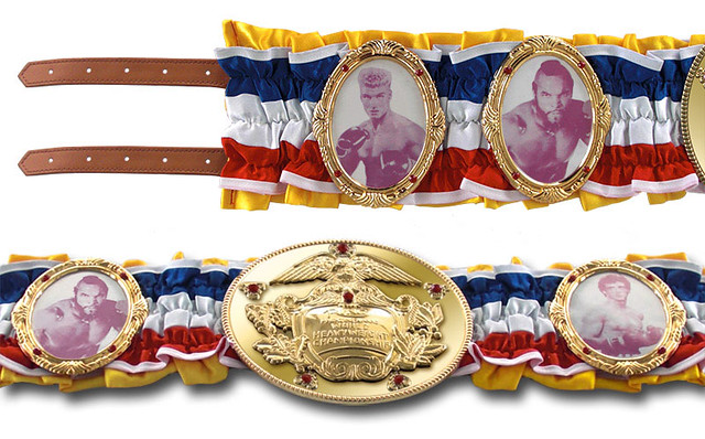 這一款由“Hollywood Collectibles”所推出的世界冠軍腰帶電影道具複製品,完全仿製真實的冠軍腰帶製作,將四位重量級拳王的肖像一一裝飾在腰帶上,做工精緻完美,堪稱博物館等級!絕對是『洛基』粉絲不能錯過的夢幻逸品!