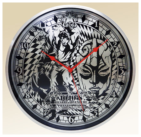 以推出JOJO冒險野郎雕像傳說系列聞名的Di molto bene,近日為慶祝電視動畫推出,特別推出特製懷錶。選定以懷錶為作品,特別符合JOJO第一部的時空背景,黑白分明的色彩設計以及新紅色指針,與先前10月推出的璧掛式時鐘有相同設計風格(請見下圖)。本商品分為喬斯達與迪奧兩種版本,預計2012年12月推出,單一日幣參考售價約1890圓,提供大家參考~