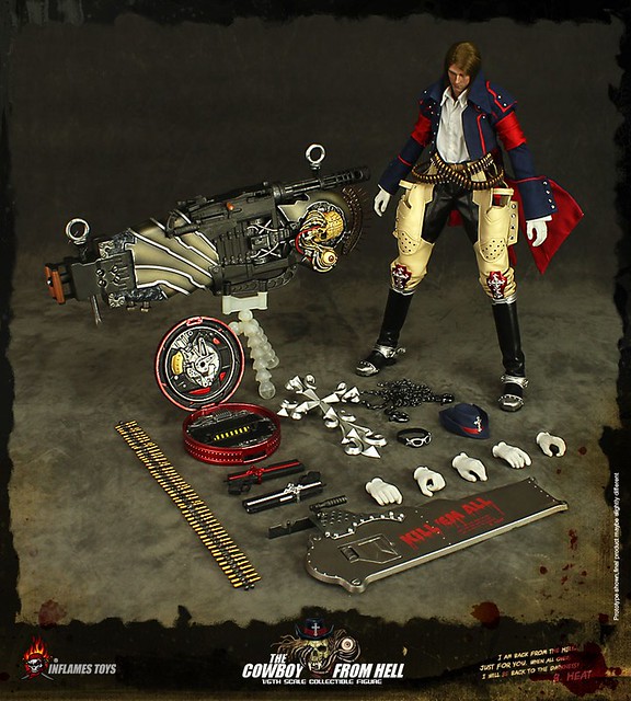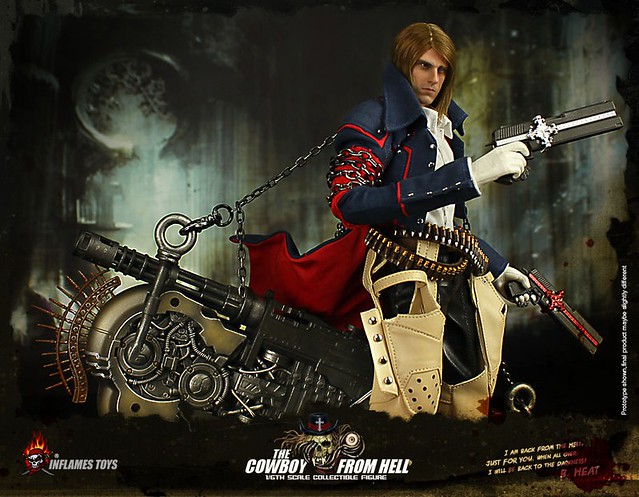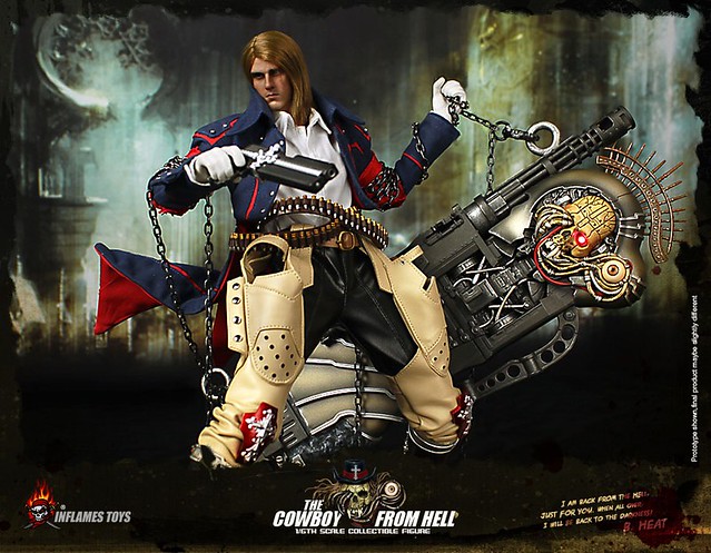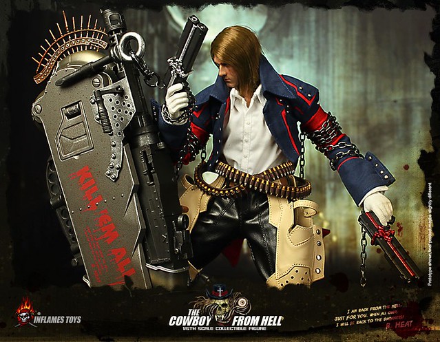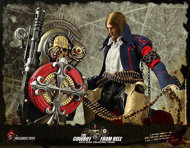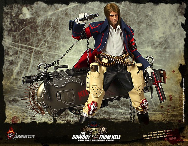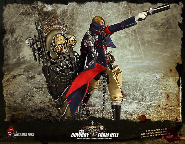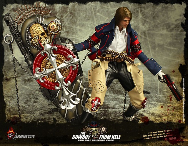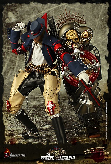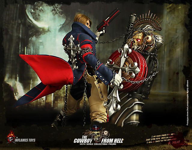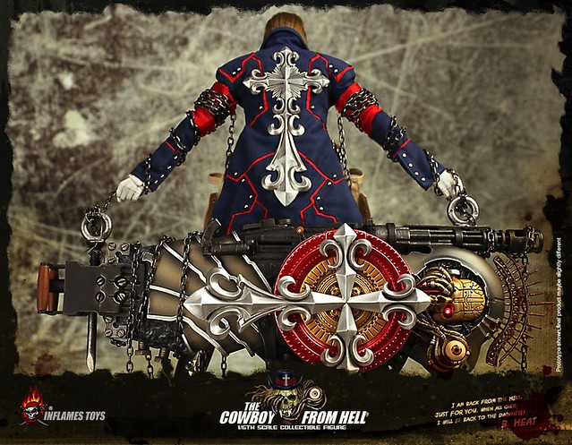 先前我們曾經介紹過由INFLAMES TOYS所推出的齊天大聖,細緻的作工以及神態令人驚豔!近日INFLAMES TOYS再度推出名為The Cowboy From Hell的1/6人偶作品。帥氣的紅藍服裝,搭配極為細緻的骷髏棺材武器,並且配上可發光骷髏眼以及部分可拆式細節設計,著實讓人讚嘆不已!本作品如果眼尖的朋友會發現,與多年前PS2所推出的射擊大作「槍神 GUNGRAVE O.D」極為神似!(請見下圖)當時槍神也曾經推出動畫與玩具作品,品質水準堪稱一流。但現在為您介紹的作品更是達到出神入化的境界,如果後續正式推出也有如此水準,那真可堪稱是神作啊!本商品高約30公分,日幣參考售價約 40740圓,預計2013年6月前推出,提供大家參考!