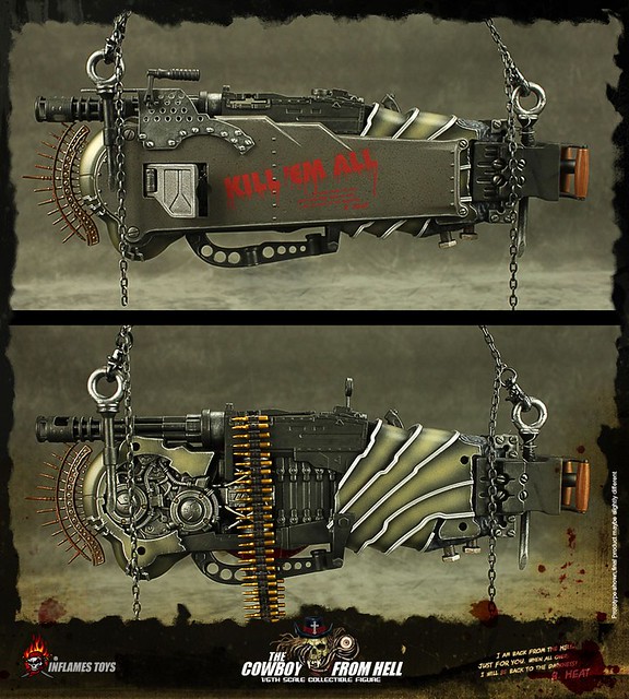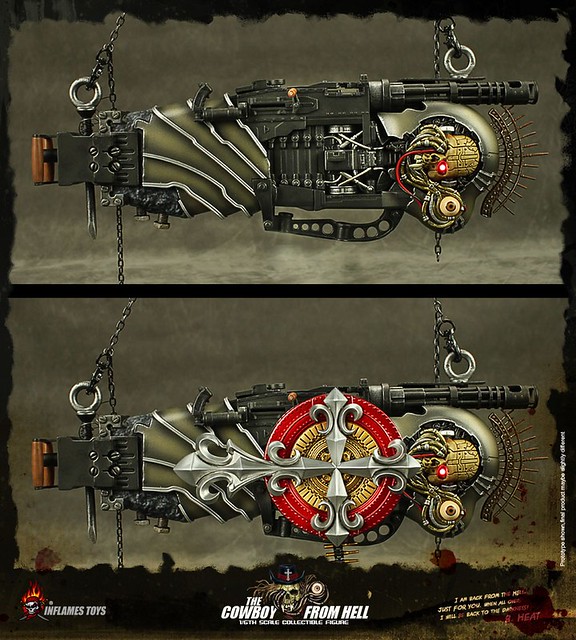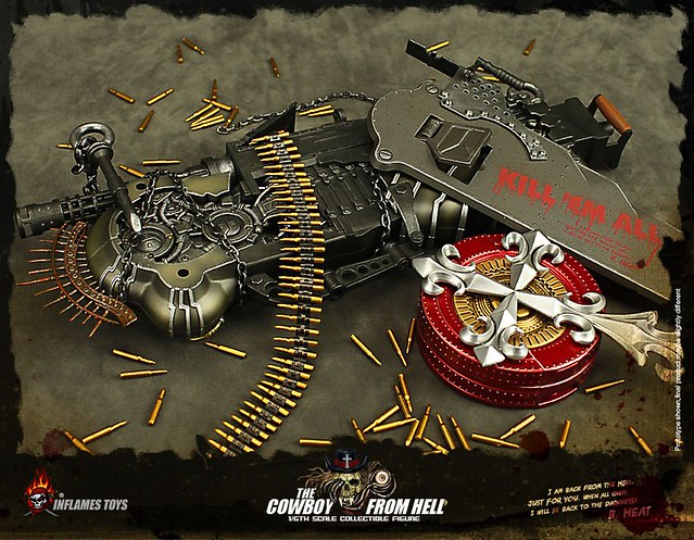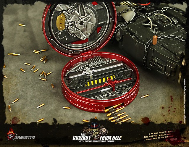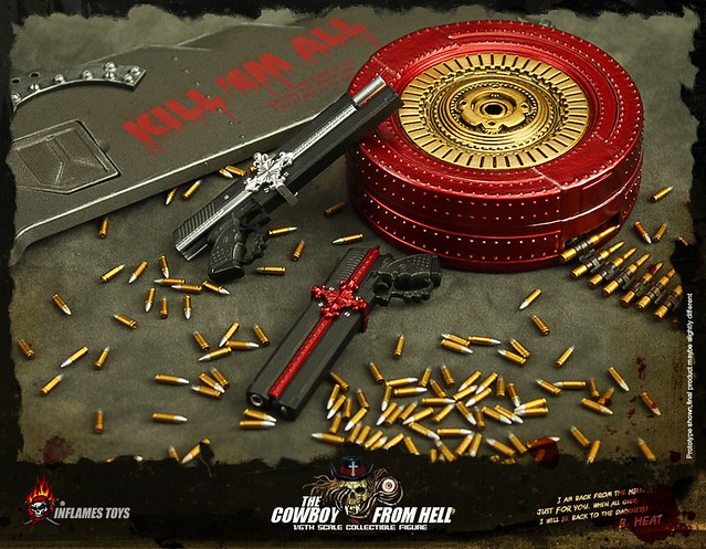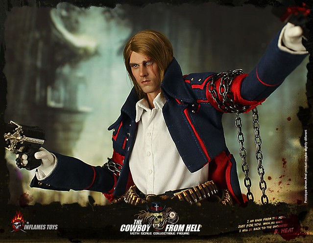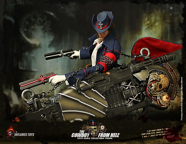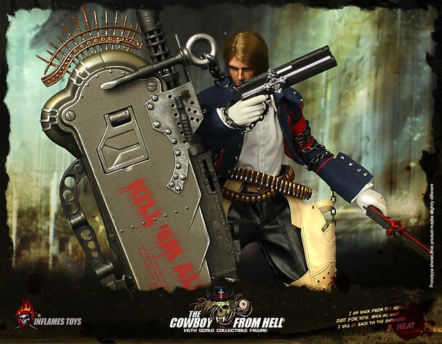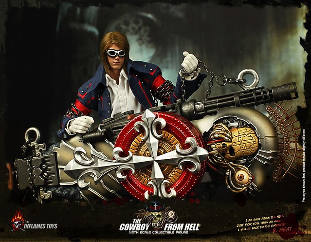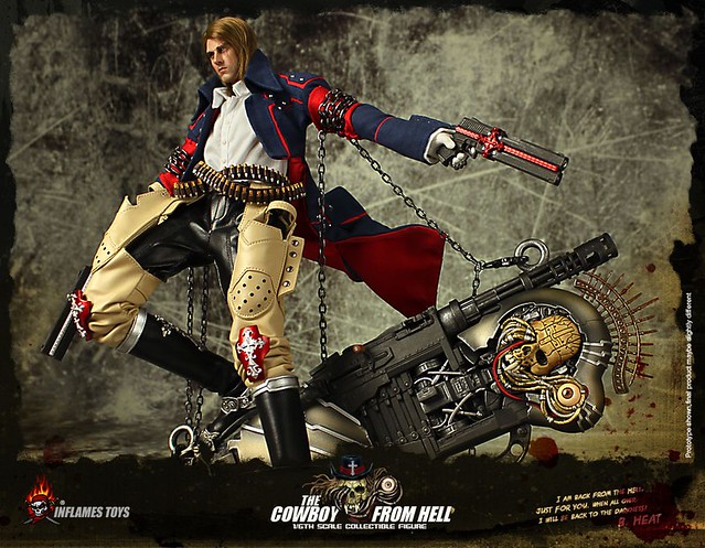 先前我們曾經介紹過由INFLAMES TOYS所推出的齊天大聖,細緻的作工以及神態令人驚豔!近日INFLAMES TOYS再度推出名為The Cowboy From Hell的1/6人偶作品。帥氣的紅藍服裝,搭配極為細緻的骷髏棺材武器,並且配上可發光骷髏眼以及部分可拆式細節設計,著實讓人讚嘆不已!本作品如果眼尖的朋友會發現,與多年前PS2所推出的射擊大作「槍神 GUNGRAVE O.D」極為神似!(請見下圖)當時槍神也曾經推出動畫與玩具作品,品質水準堪稱一流。但現在為您介紹的作品更是達到出神入化的境界,如果後續正式推出也有如此水準,那真可堪稱是神作啊!本商品高約30公分,日幣參考售價約 40740圓,預計2013年6月前推出,提供大家參考!