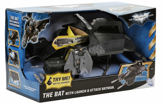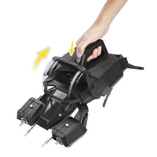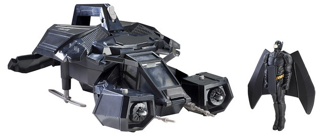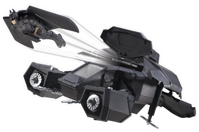 這一款由玩具廠商MATTEL 所發行的BATMAN THE DARK KNIGHT RISES THE BAT Vehicle ,使用了類似戰鬥機的彈射系統,將蝙蝠俠發射出去。並且搭配了蝙蝠俠背上的滑翔翼裝置成功降落離開。這看起來的確是一個相當符合邏輯的解釋,不曉得各位讀者覺得如何呢?