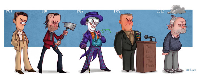 知名藝術家Jeff Victor 以他擅長的卡通畫風繪製了許多好萊塢巨星插畫,將他們生涯代表作當中著名的角色一一畫下來,強尼‧戴普(Johnny Depp)、湯姆‧漢克(Tom Hanks)、娜塔莉‧波特曼(Natalie Portman)... 眾多巨星一次看遍這些極具風格的插畫真的是相當過癮啊!~