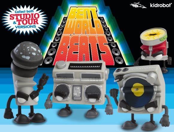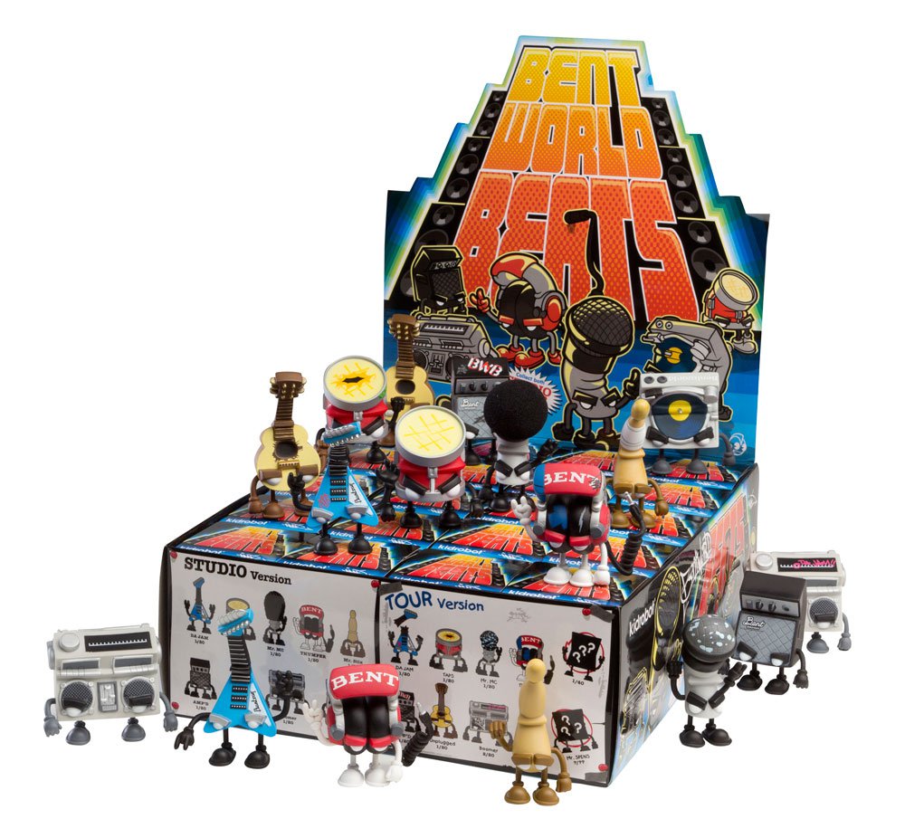 MAD 與 Kidrobot 跨刀合作,推出了Bent World Beats 系列玩偶,將耳機、吉他、貝斯、音箱、鼓棒、鼓、耳機以及Boom Box 設計成了人偶造型!