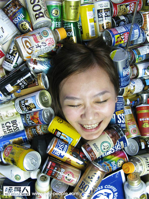 ↓ 收集很多Boss咖啡罐的阿月妹。