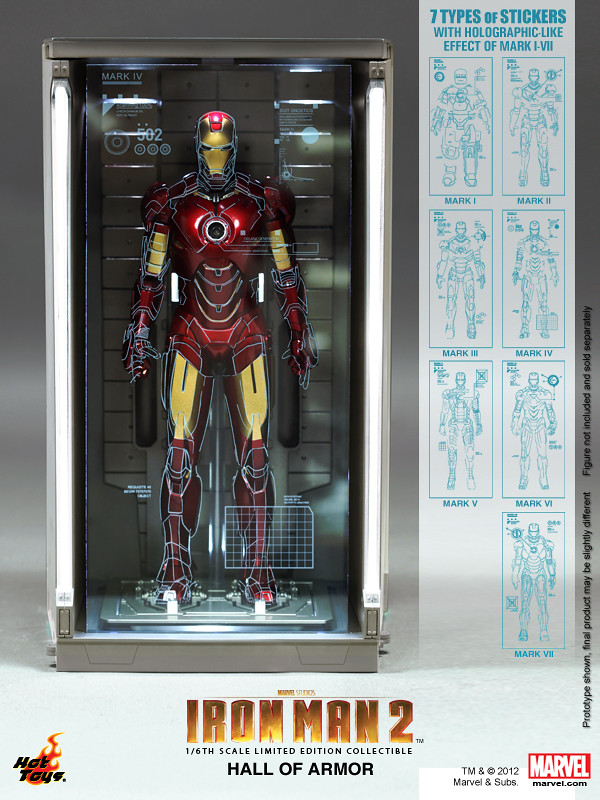 Hot Toys - DS001A-C - Iron Man 2: 1/6th scale Hall of Armor Collectible 尺寸:高35cm × 寬23cm × 深17.5cm,預計2013年2月發售,售價未定。
