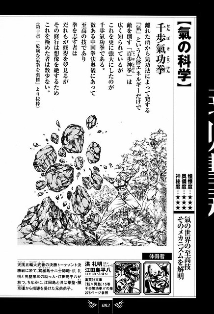 奧義千步氣功拳!從一定的距離,利用氣功法發出的就叫做「氣」!聞名的「百步神拳」即是以人體的熱能來打敗敵人,將這更發揚光大的則是千步氣功拳!在所有中國拳法奧義裡,可說是至高的技術,有志學拳的人,大家都夢想修得此法,由於非常不易修得,故熟練此法者少之又少。