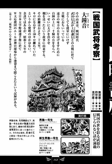 起源於日本戰國時代,武田信玄軍受制於上杉謙信軍,而無法至前線作戰支援,於是武田信玄軍便挑出一千名騎兵排成陣列大聲的將檄文吶喊出來,以激勵鼓舞在前線作戰的士兵們。當時兩地距離長25里,換算成現在的公里數,則有100公里之遠!值得一提的是,日本昭和十五年,全日本大學棒球選拔賽中W大學應援團在現場加油打氣的大鐘音之聲,創下從神宮球場傳到池袋的記錄,大鐘音的威力實在令人驚嘆!
