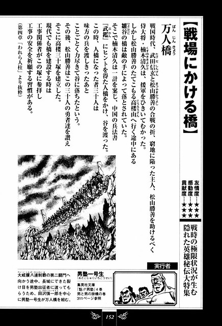 戰國時代,「武田信玄」和「松山勝善」對戰的時候,為了拯救陷入絕境的主人松山勝義,侍大將「楠清久」率援軍去支援,結果在往高樓山的途中,雛谷的橋被敵人破壞了,於是楠清久想到一計,靈感得自中國的兵書「武鑑」,架起人橋,過了山谷。