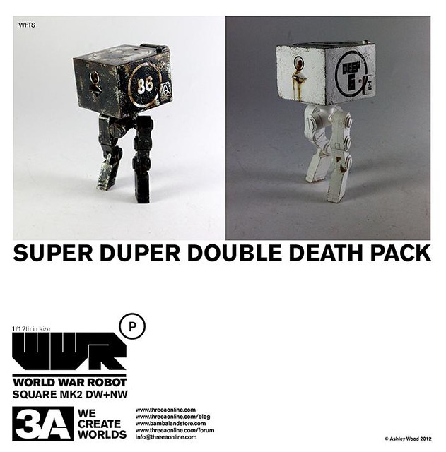 香港知名的玩具公司threeA ,今天無預警地發售了發售了大量的商品,包括三款款1/12 系列的機器人 WWRp Deep Powder MK3 Mode B、WWRp Dutch Merc Bertie MK3 以及WWRp Super Duper Double Death Pack,另外還有三種1:1 系列Ashley Wood Collection 的女性腳掌。有興趣的玩具人可至threeA 官網購買:bambalandstore.com