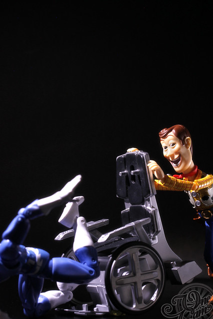 外國的玩具網站「TheOneCam」,以絕佳的攝影技巧,認真地拍攝了一系列關於「伍迪」的超爆笑惡搞照片,證明了這一款「特攝 Revoltech No.010 玩具總動員:伍迪」絕對是玩具界最兇惡的超級惡搞角色啊!~