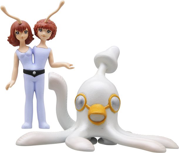 奇譚俱樂部這次製作了七款故事出現的角色,有ハレルヤ 哈雷路亞(約有6.2公分高)、我王と鬼瓦(兩個一組)我王與鬼瓦、ロビタ 羅比塔、チロル CHIRORU、ノルヴァと着ぐるみ 諾魯瓦與裝備(兩個一組)、伊吹丸和シークレット(隱藏版)等等,單款轉蛋售價約400元日幣,尺寸大小約2.5公分~7公分,提供給喜歡手塚治虫老師的玩具人參考。