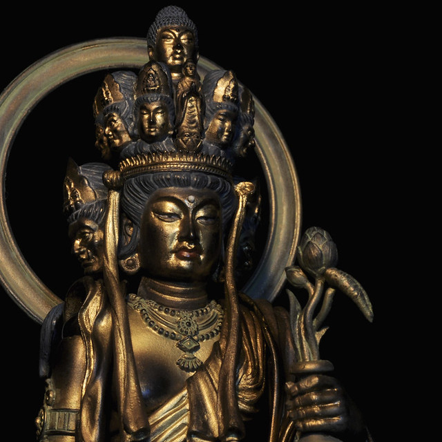 十一面觀音(梵名(एकदशमुख [ekādaśamukha])),梵名的直譯為十一最勝或十一首。為六觀音之一,在六道中主救度阿修羅道的一切眾生,全稱爲十一面觀音菩薩,是觀世音菩薩的化身。淵源於印度婆羅門教之十一荒神,其十一面之配置有種種不同,各有其特殊的象征意義,並又分有二臂、四臂、八臂等不同。