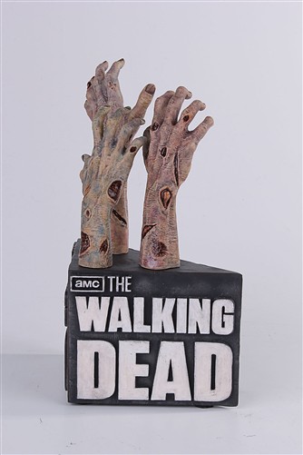 Gentle Giant近期推出不少殭屍劇陰屍路的周邊,現在為您介紹的是最新推出的書架(或稱書檔、Bookends)。斗大劇名標題的台座上,是一隻隻死而復生的殭屍之手,相當經典的殭屍商品構圖值得推薦給影迷蒐藏。本商品尺寸約H 6.75 X W 4.75 X D 2.5英吋,美金參考售價約89美元,預計2013年第3季推出,提供大家參考!
