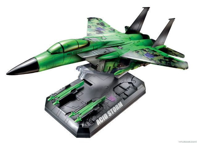 在今年初的紐約玩具展曾展出,孩之寶玩具Hasbro 最新發表了一款美國玩具反斗城限定版本的「酸暴雨」(Acid Storm),這是一位狂派子團體“造雨者”(Rainmakers)成員,可變身為變形金剛系列當中深受喜愛的F-15鷹式戰鬥機造型,加上Transformers Masterpiece 系列的加持:更佳的造型與塗裝表現,鐵定會成為一個變形金剛粉絲為之瘋狂的熱門款式啊!~