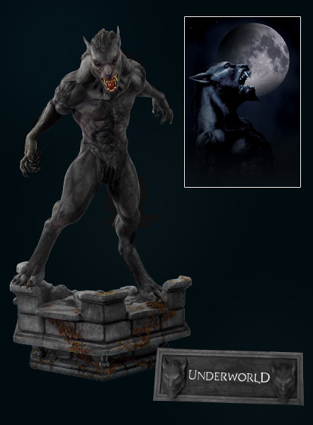 知名玩具公司Hollywood Collectibles Group預計今年第3季推出電影決戰異世界(UNDERWORLD)裡的狼人雕像。作品採用1/4比例製作,重現狼人路西安為了解救吸血鬼愛人的怒嚎姿態。預計將推出一般限量與稀有限量兩種版本,價格都是329.95美金。稀有限量版全球僅150份,附贈尺寸18" x 12" 的高級印刷品以及標示電影名稱「UNDERWORLD」的名牌。有興趣的朋友別忘了先去搶稀有限量版啊!