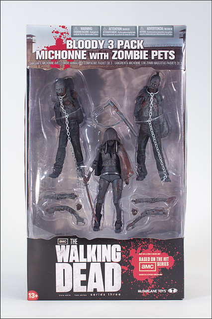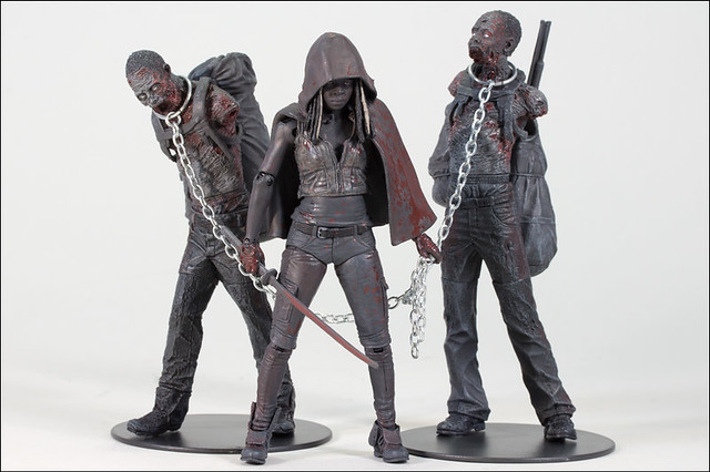 因為販售「陰屍路」系列作品而海撈一筆深受喜愛的麥法蘭玩具(McFarlane Toys),宣布將推出電視劇版「黑白血腥米瓊恩三人包」(Walking Dead Michonne Bloody Black and White 3-Pack),內容將包含了米瓊恩(Michonne)以及她的兩隻寵物殭屍(pet Walkers)。