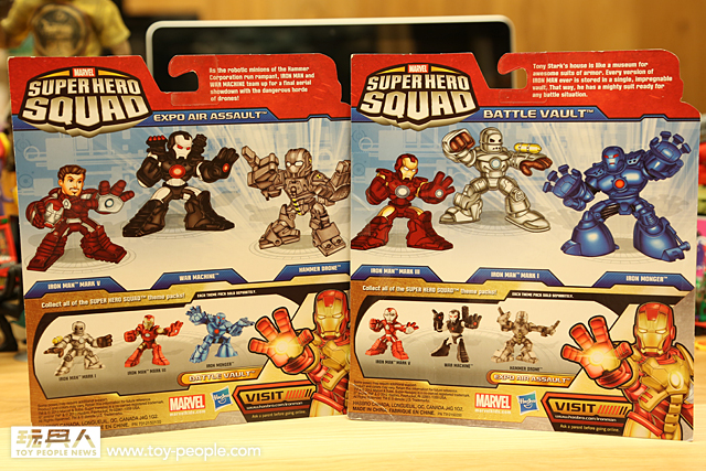 ▼ 最新的「Marvel Super Hero Squad」以「鋼鐵人3」的標題,開始推出電影造型版本,將其轉換為可愛又帥氣的「Super Hero Squad」風格,分別推出了:“BATTLE VAULT”以及“EXPO AIR ASSAULT” 兩種組合。