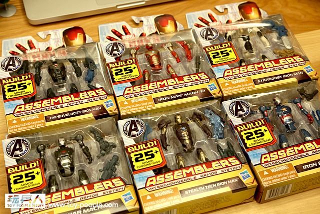 「Marvel Super Hero Squad」系列一直是小編很喜歡的一套Marvel 作品,除了有場景之外,人物角色的塗裝更是非常的細緻呢!以小size 玩具的水準來說,可是上上之選呢!擺在工作桌上可說是電腦最好的夥伴呢,尤其這次的馬克5 造型還可以替換頭,不收齊對不起自己啊!「Assemblers」3.75 吋系列應該不用小編多作分享了,可組裝的3.75 吋作品去哪找,六款新造型的鋼鐵人呈現在各位玩具人的眼前,只能說殺~~~