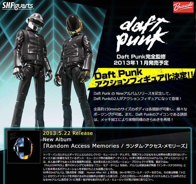 2013年4月29日新增販售資訊,魂Web線上商店5月下旬開始接受訂購,預計2013年11月發行S.H. Figuarts可動系列DAFT PUNK-Thomas Bangalter & Guy-Manuel de Homem-Christo,售價單款約4,725元日幣,喜歡Daft Punk傻瓜龐克的玩具人千萬別錯過了!!