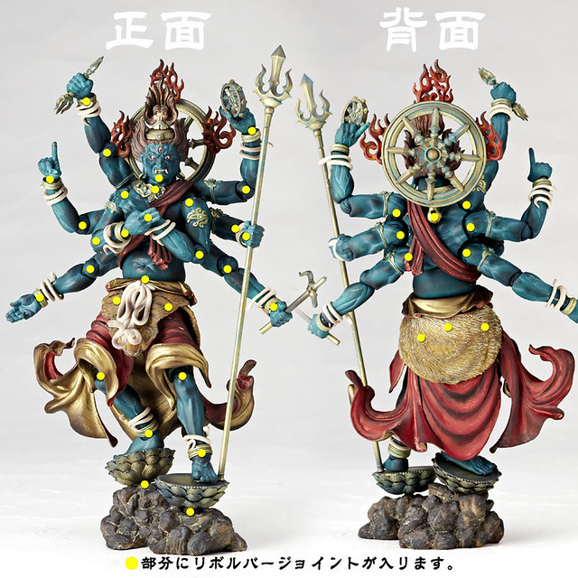 這次海洋堂輪轉可動佛像以八臂造型呈現,附有多款手持武器、臺座等等配件,尺寸高約15公分,售價約4300元日幣,提供給喜歡海洋堂輪轉可動佛像系列的玩具人參考。