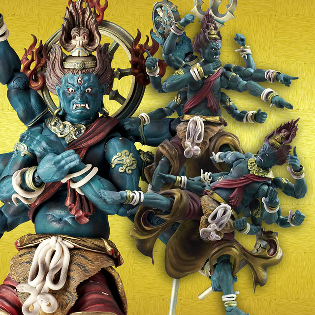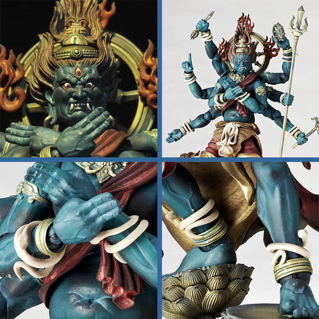 日海洋堂玩具公司的Revoltech Takeya 輪轉可動系列預計2013年7月發售編號015的軍荼利明王,軍荼利明王佛教金剛乘五大明王之一,為南方寶生佛的憤怒化身,身上有許多蛇作為飾物,有除惡魔、蛇毒、熱惱、疾病的功德。軍荼利意譯甘露瓶,儲藏著用之不竭的生命能量,軍荼利明王的塑像有兩面四臂、四面八臂等形式,身青色,眼紅色,手把二赤蛇,其它手持戟、杵、輪等。其四面四臂像表示降伏我癡、我見、我慢、我愛四煩惱。