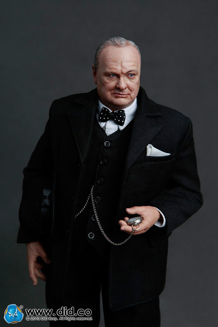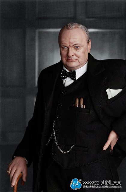 曾被票選為最偉大的英國人—邱吉爾首相(1874年11月30日~1965年1月24日 ),是在二次世界大戰中聯合美國擊敗德國的偉大軍事、政治家,也是榮獲諾貝爾獎的文學家。許多蒐集1/6人偶的蒐藏家都會收錄偉人系列,如今邱吉爾被立體化真是一大喜訊!不只是立體化,本作品採用雙頭雕設計,可以替換成邱吉爾最經典的叼雪茄並比出剪刀手的勝利姿態,多款配件也能讓您重現許多歷史上的著名場景。本商品由DID Corp推出,參考售價約168美元,預計2013年6月推出,提供大家參考!