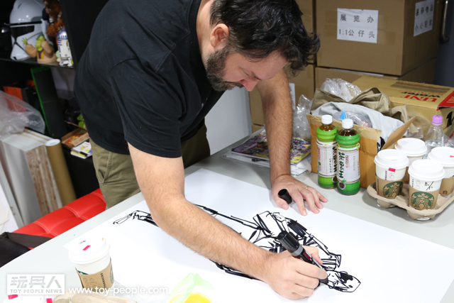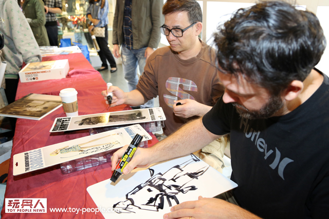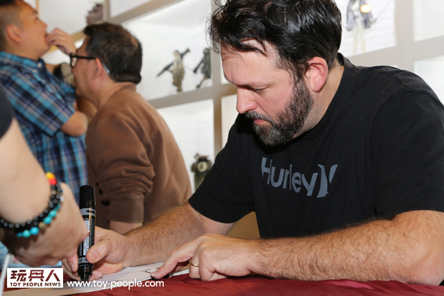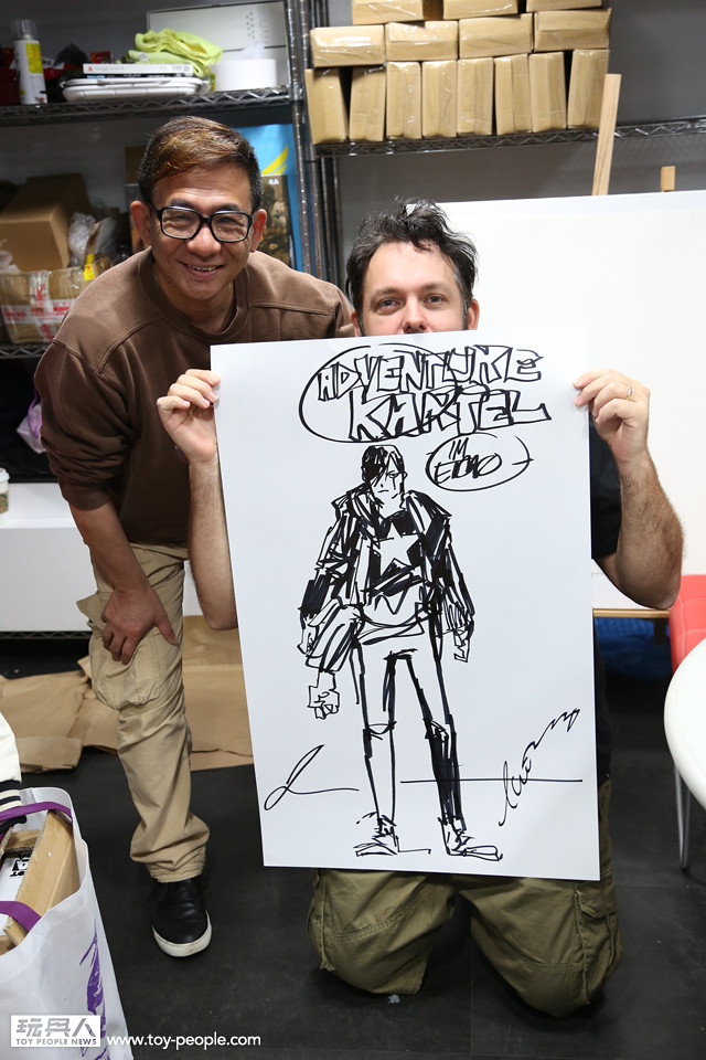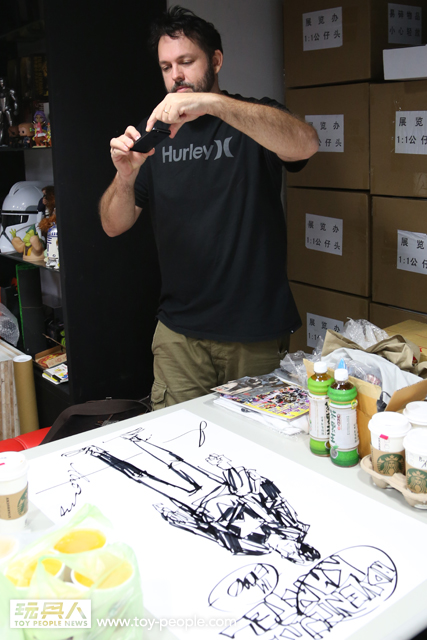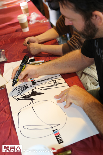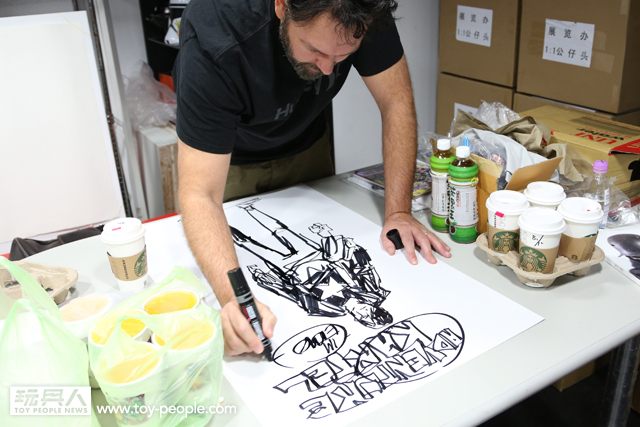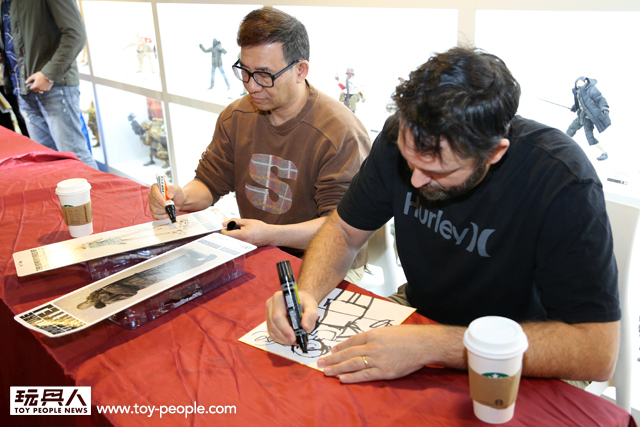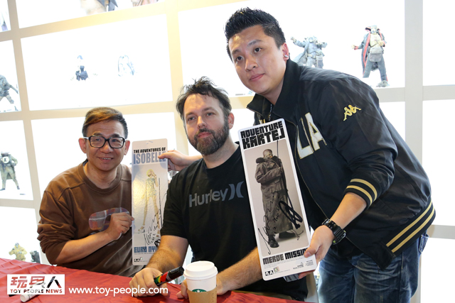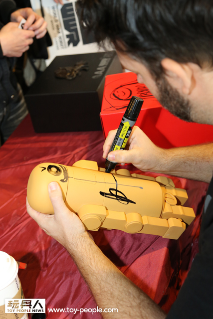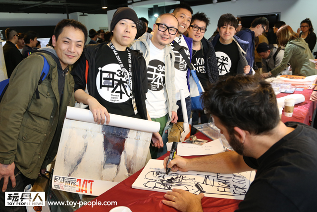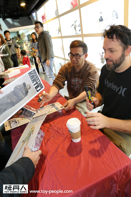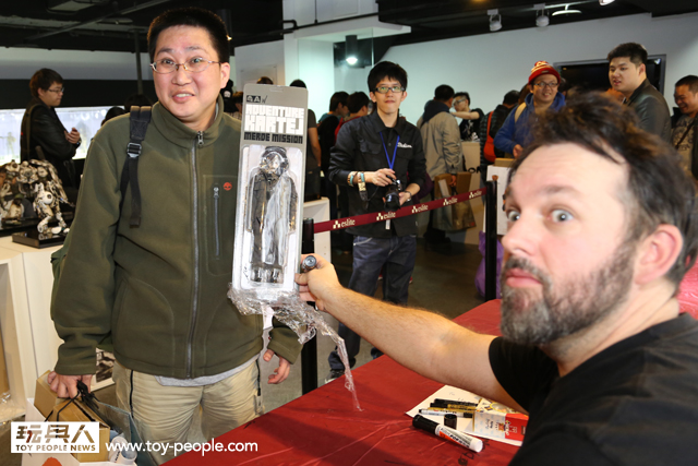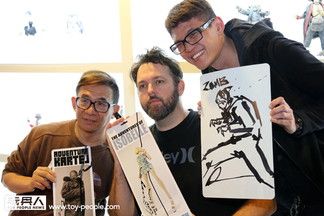 這次真的很感謝threeA 台灣代理野獸國玩具,為我們爭取到了如此精彩的展覽,而且還能一睹threeA 首腦Ashley Wood 與鋒哥兩人的廬山真面目,甚至與他們零距離的互動。Ash 與Kim 兩人親切的問候,加上Ash 對於簽名、繪圖的要求皆來者不拒,都令所有參與其中的玩具人們留下了珍貴回憶。