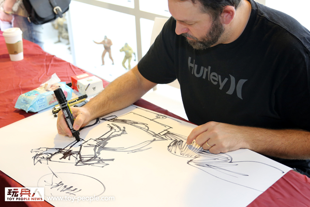 ▼ 此時Ashley Wood 已經在休息室等候,等待的時候一時興起就畫了起來。