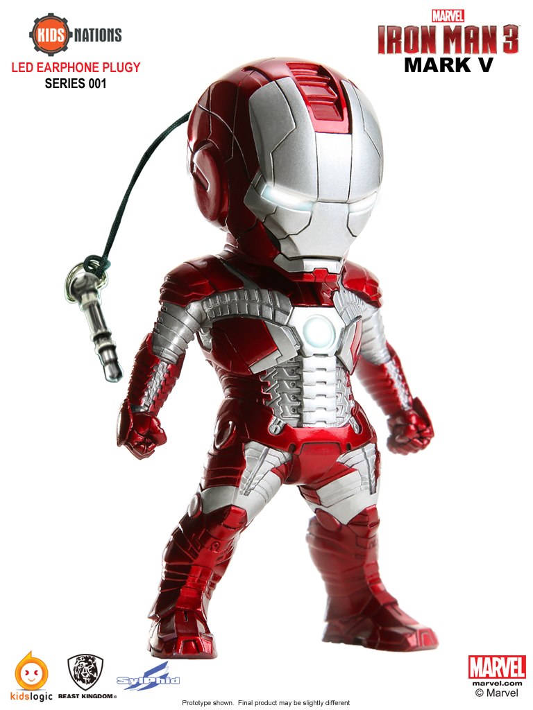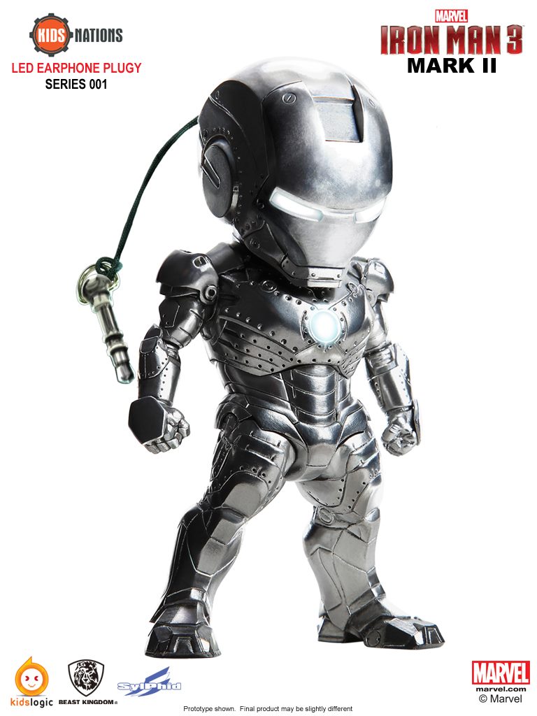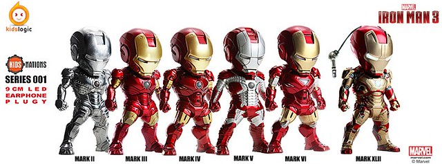 全套預計推出六款:鋼鐵人馬克42、鋼鐵人馬克2、鋼鐵人馬克3、鋼鐵人馬克4、鋼鐵人馬克5以及鋼鐵人馬克6。精緻的造型以及高完成度的精美塗裝,令人難以置信這僅有約9公分高,並且還搭載了LED 發光功能,可讓眼睛與反應爐發光!