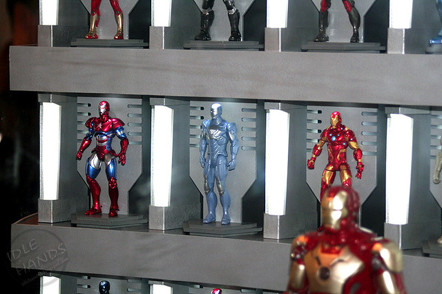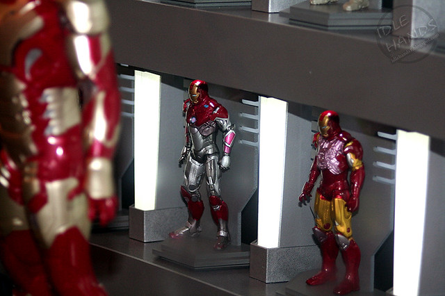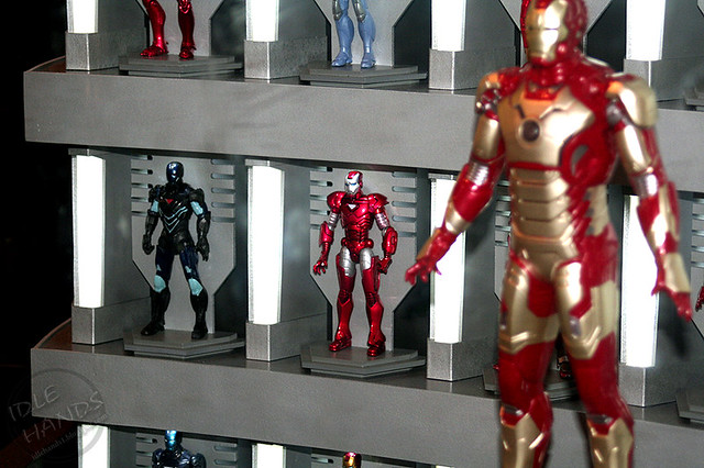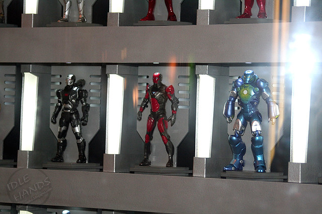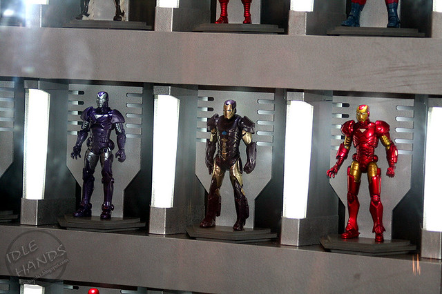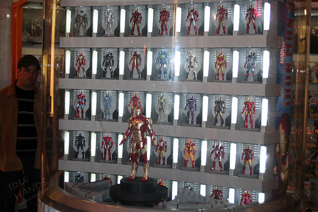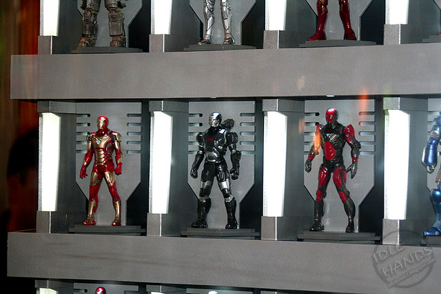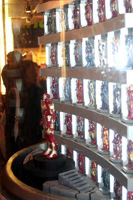 世界知名的玩具廠商【孩之寶 HASBRO】,因應即將上映的電影【鋼鐵人3】,現正於紐約時代廣場(Times Square)的玩具反斗城(Toys R Us)展出一系列、一共35款3.75吋的鋼鐵人人偶。造型非常神似我們過去所介紹過的“創意裝甲人物組”(孩之寶鋼鐵人特別報導:PART:2、PART:4),雖然沒有電影般講究細節的造型,但是取而代之的是親民的售價,以及精美的造型,相信如果能有機會以這樣的形式全制霸鋼鐵人收藏,想必也是十分過癮的事情吧?!