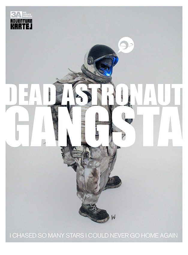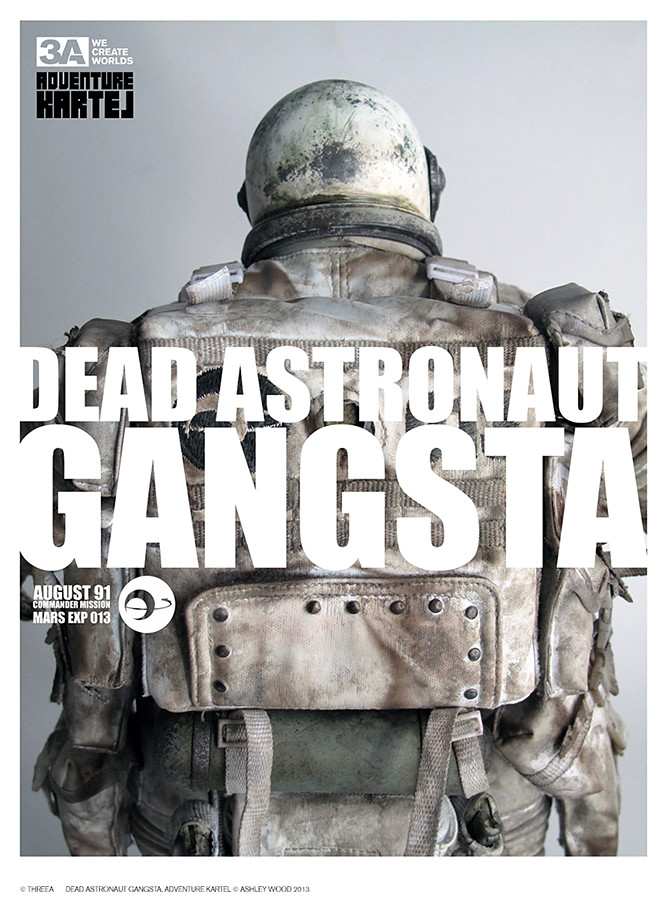 threeA 設計師Ashley Wood 公開了新作“Dead Astronaut Gangsta”(死亡太空黑幫)情報圖,這就是在4月所發行的threeA 電子報3AVOX 當中所公開的太空人後續情報圖。另外,在2011 年Ashley Wood 所發行的漫畫“Mrs+Miss vol.1” 當中,也出現了疑似是死亡太空黑幫的角色,在正式圖片發表之前,也許能讓大家稍稍想像一下他的模樣!