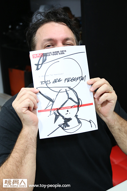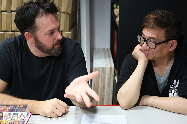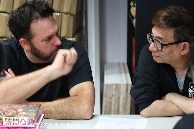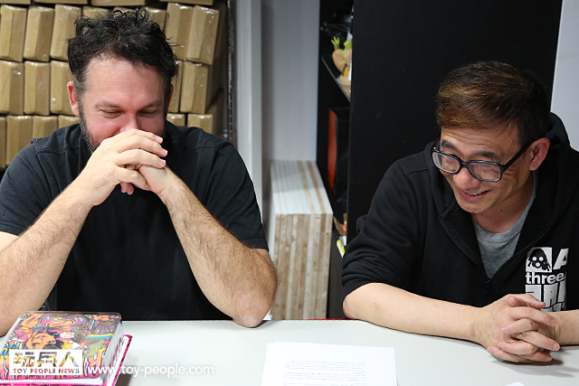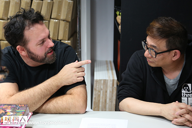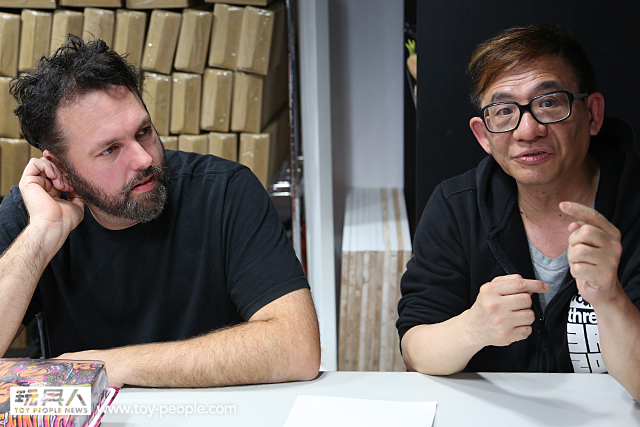 我們希望能讓許多人因為愛這種玩具,愛threeA 而要投身到這個產業中,甚至開始運作一家公司。(轉頭問Kim)你不覺得啟發別人是非常重要的嗎?!你同意我希望把玩具帶到另一個層次的想法嗎?!