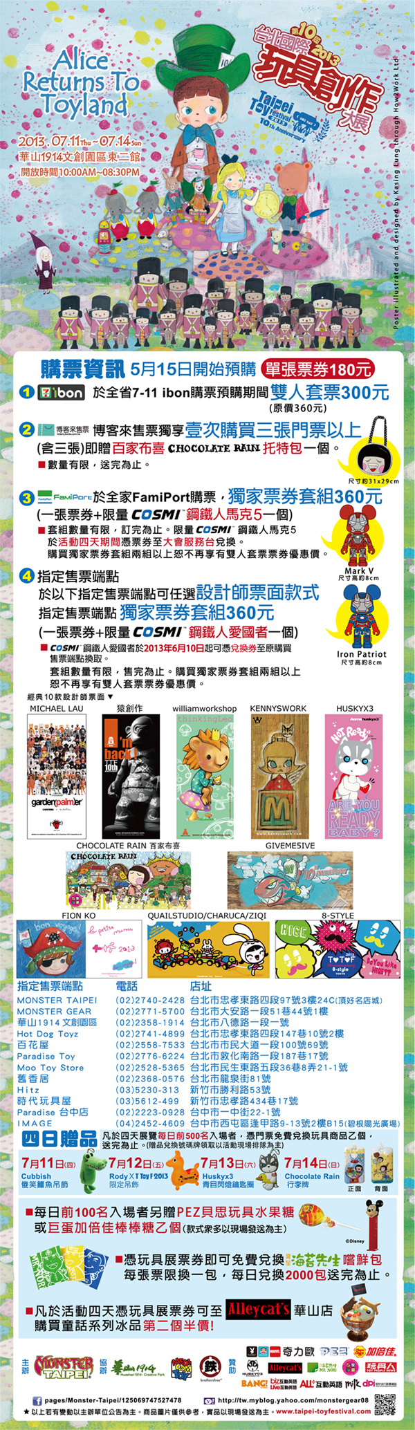 活動展覽 TTF 2013台北國際玩具創作大展10款設計師票面曝光! 玩具課長 2013-05-09 21:26:42 分享 ✕ 分享 已複製網址 分享到 Facebook 分享到 LINE 分享到 Reddit 分享到 Twitter 分享到 Plurk 分享到微博 眾所期待的2013台北國際玩具創作大展(Taipei Toy Festival 2013 )越來越近,大家一定引頸期盼10週年會有哪些驚喜展出吧!?後續我們將一一為大家揭露參展訊息,但在這前我們不妨看看展覽焦點之一「10款設計師創作票面」,其中也透露了即將參展秘密喔~~~~ 玩具課長 十分老實的上班族,夜夜入眠想著的都是玩具公仔... 如果你也一樣睡不著,歡迎加入玩具人!