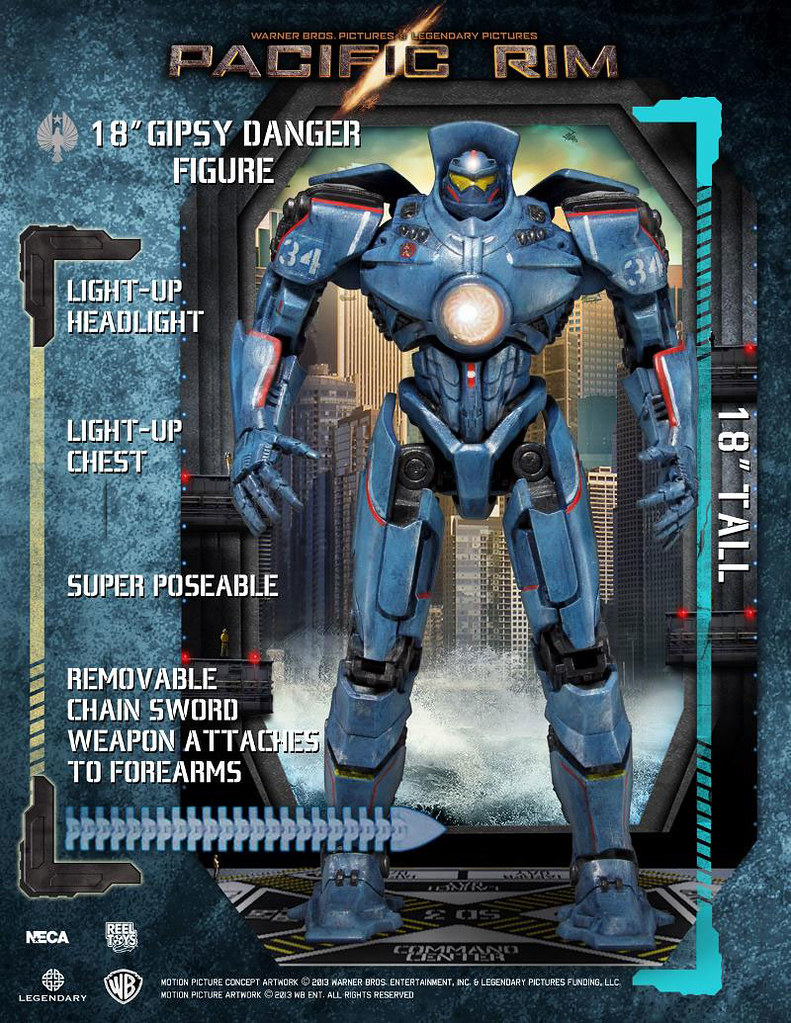 在今年2月Toy Fair展覽中NECA 玩具廠商已經公開了PACIFIC RIM 環太平洋相關的約7吋高玩具商品,最近又發佈了18吋高的Gipsy Danger「吉普賽危機」(台灣翻譯)機械人的未上色樣品,讓即將於2013年7月暑假上映的科幻巨作電影《環太平洋 PACIFIC RIM》的話題不斷,發行售價及日期都還尚未公佈,有興趣的玩具人請持續鎖定玩具人網站,情報提供給喜歡PACIFIC RIM 環太平洋的玩具人參考。