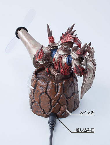VERTEX旗下的electroys系列自從宣佈推出人氣狩獵電玩遊戲魔物獵人的相關周邊後相繼公開了完成作品實體圖。近期公開了企畫第2彈的USB風扇。本作品採用了雄火龍劍士手持銃槍的半身像造型,打開風扇後會看到亮點特校,目的是為了再現龍擊砲發射的瞬間。本商品預計6月推出,日幣參考售價約3980圓,提供各位玩具人參考。