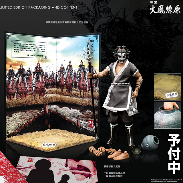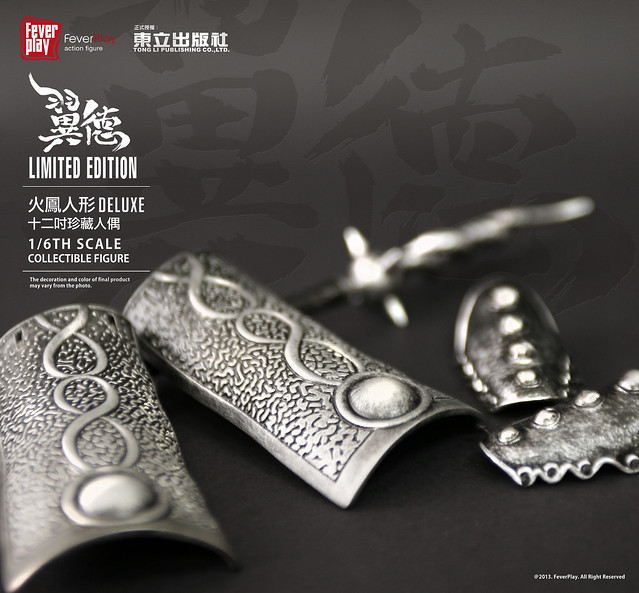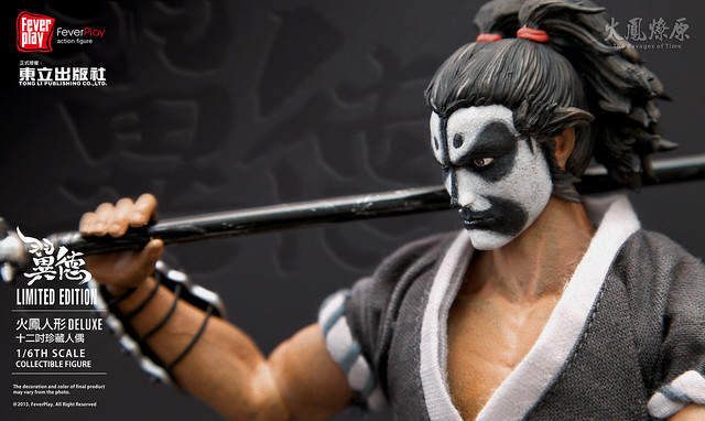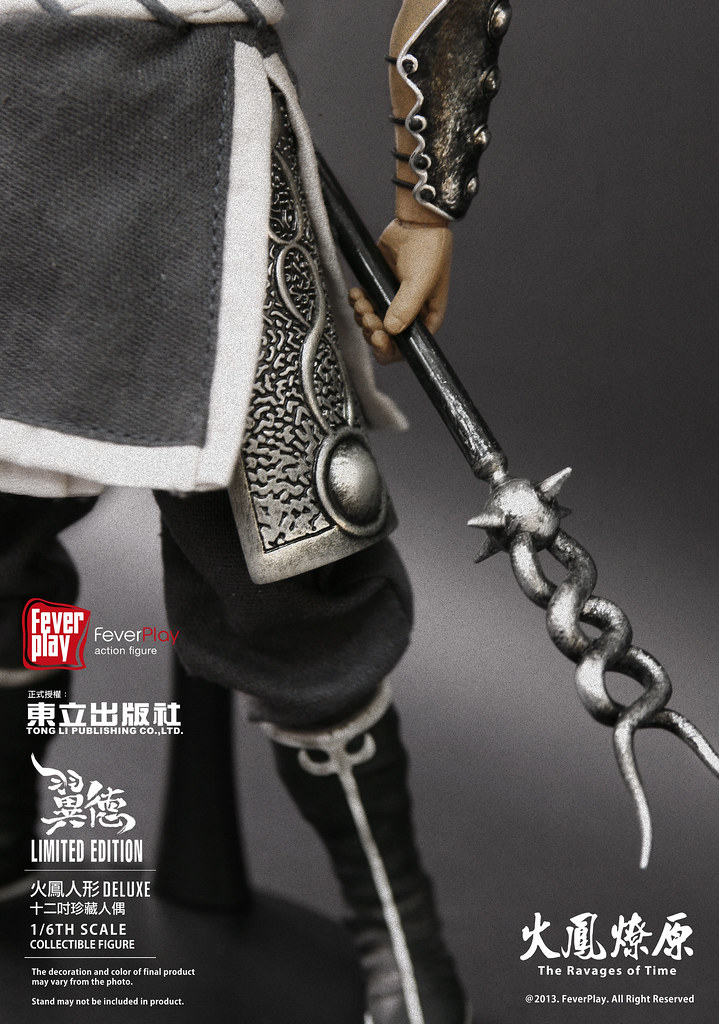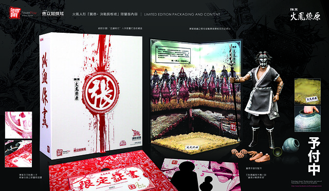為了慶祝與紀念知名的三國漫畫「火鳳燎原」推出單行本第50 集,FEVER PLAY 將推出新版的【火鳳人形】,將推出一系列出自火鳳燎原劇情中的角色,一一登上12吋平台!第一波【火鳳人形】將推出的是取敵首級如探囊取物的桃園畫家‧張飛【翼德】!依照「火鳳燎原」作者「陳某」的設定,經典重現其原作造型,把這位花臉狂傲、粗中帶細的燕人張飛完美呈現。