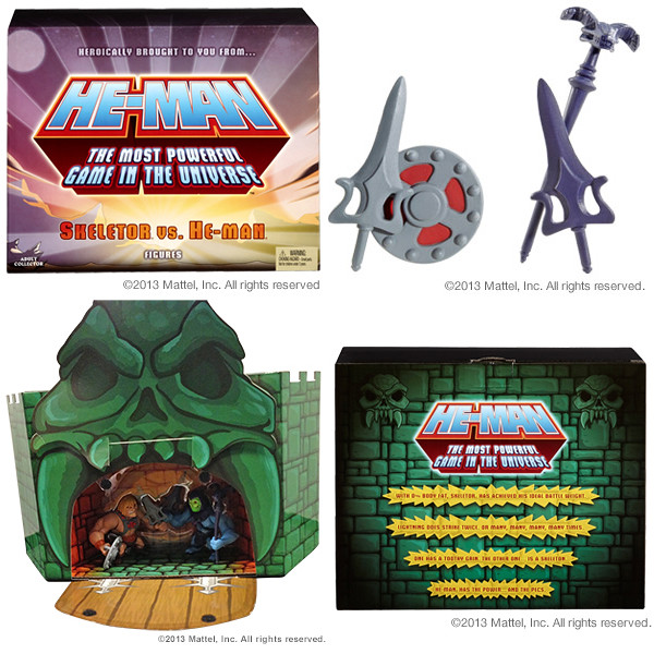 美國知名的玩具廠商Mattel 宣布將要推出SDCC 2013 限定「迷你太空超人 & 骷髏王」(Masters of the Universe® Classics Mini He-Man® & Skeletor® Figures)。將太空超人中,經典的主角太空超人與骷髏王Q 版化,全身6 處關節部位可動,包含了傳統經典的“J”勾拳,以及同樣迷你化造型的神劍(power sword)、盾牌以及骷髏王的毀滅魔杖。除此之外,將以經典場景葛雷堡(Castle Greyskull)造型紙盒包裝,這麼經典的設計,絕對值得「太空超人」系列玩具人收藏啊!~推薦給大家!