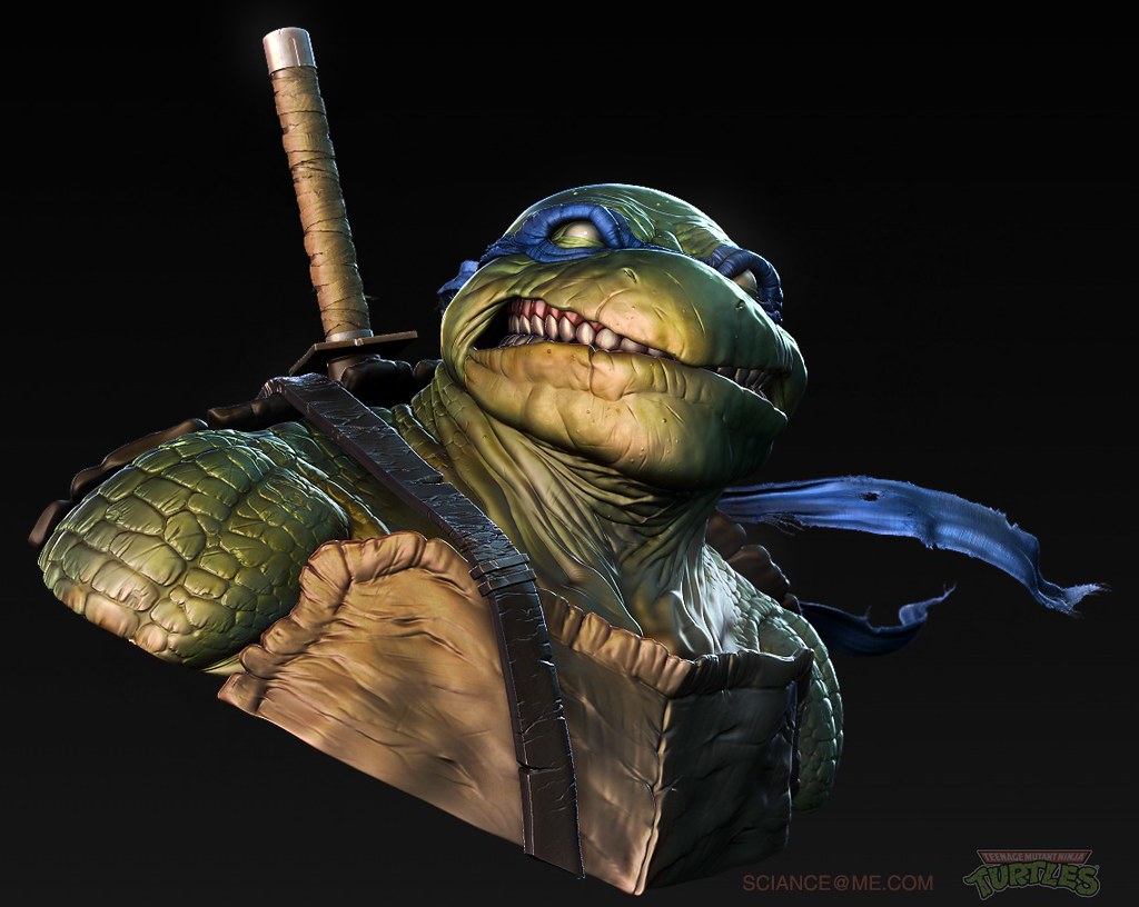在曾經推出過『BloodRayne』、『魔鬼剋星』...等知名遊戲製作公司『Terminal Reality』工作的3D 藝術家Ian Olsen 在網路上分享了他最新製作的個人作品,超級真實、殺氣騰騰的「忍者龜」李奧納多3D 模型。這個模型是依據知名插畫家Dave Rapoza 的作品所製作。彷彿真實、遍佈全身的鱗片,以及布料質感,都更進一步地強化了這個作品的魄力!~