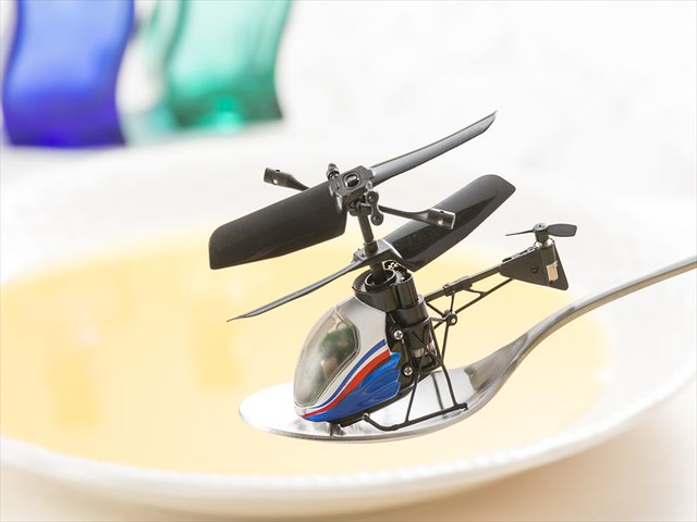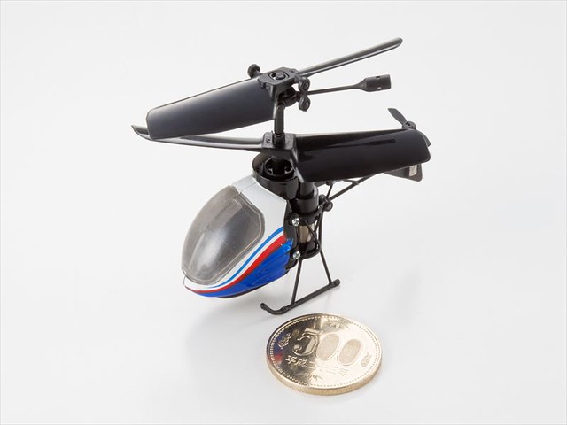 這一款「NANO-FALCON」在2013年的3月13日取得了認證,全長 65 mm 、重量僅11 公克!~ 為了達成這個目標,將每一個零件一一輕量化,並且作了節省尺寸的設計,使用智慧型手機用的小型精密機器零件來製作,而實現了取得金氏世界記錄的這個殊榮。並且在機體中搭載了高性能的陀螺儀(gyroscope)與二重反轉機構,令其能夠穩定的飛行。此外,機體採用了軟性、延展性佳的材質,令其不容易損壞,能夠輕鬆地在桌面上遊玩。