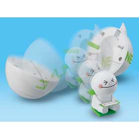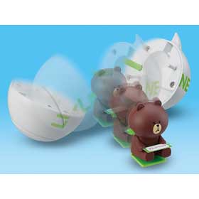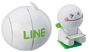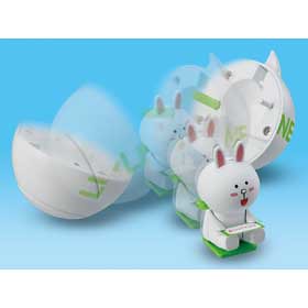 大人氣的通訊軟體Line其周邊相關商品推陳出新,在Takara Tomy的玩具官網中還特別開闢一個Line Town的網頁,來專門介紹販售Line的周邊相關玩具商品,這次想介紹給喜歡Line的玩具人一項將在2013年7月推出的LINEトコトコムーン,LINE 發條驚喜球(暫時翻譯)將受歡迎的Line角色人物饅頭、兔兔和熊大包在球裡面,轉動旁邊的發條裝置後放在平面桌上,球型裝置就會打開裡面的饅頭、兔兔和熊大就會跑出來,售價約1260元日幣,提供給喜愛Line的玩具人參考。