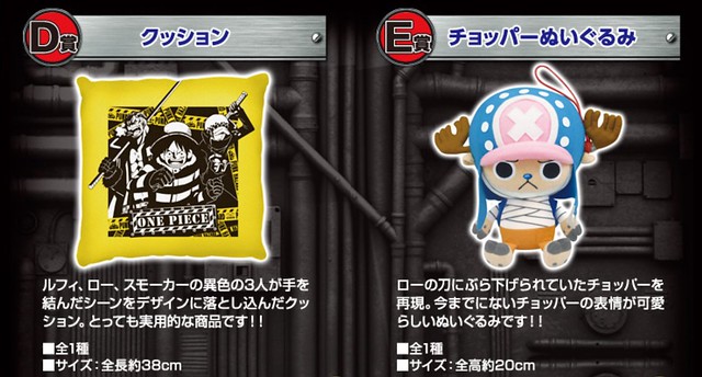 D賞就是有上述同盟圖樣的抱枕、E賞 因為變身暴走意外而負傷的喬巴娃娃,請注意連被掛在羅身上的吊繩也做出來囉!看起來表情好無辜啊!