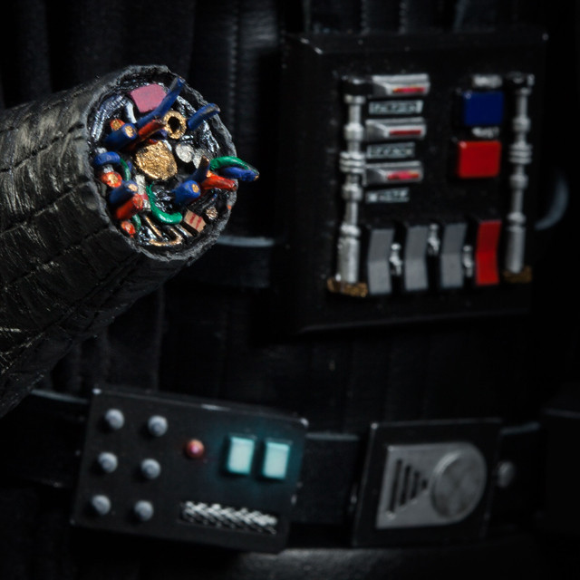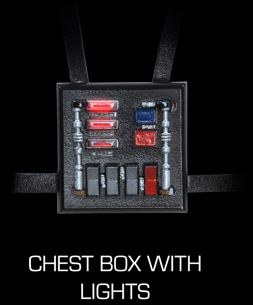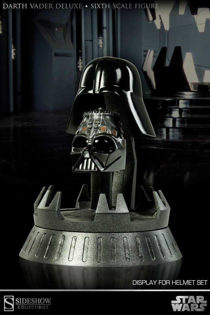 這一款豪華版本(Darth Vader Deluxe)黑武士可重現舊作三部曲中的每一個經典畫面,具有完美的電影造型與比例,忠實地重現黑武士的服裝、極具細節表現的面罩、頭盔,以及高擬真頭雕造型。並且為了能夠更加完美地展現收藏,搭配了一款帝國符號、可發光的造型地台,以及一個冥想艙(meditation chamber)可收納頭盔與面具除此之外,SIDESHOW 官網限定版將多附贈一款可供替換的被切斷義手。