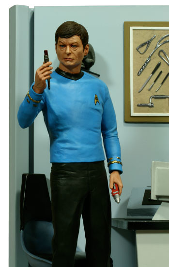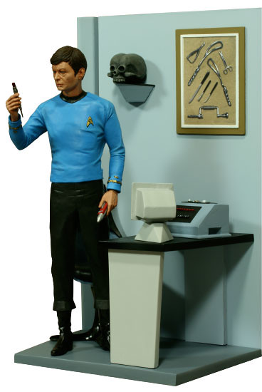 本篇則是要為您介紹HCG新推出的麥考伊醫官經典場景雕像。麥考伊醫官是企業號的首席醫官,綽號Bones(中譯:老骨),在企業號裡不只是乏味的補血角色,他也利用這項技能進行許多策略性戰鬥與分析,對於這部經常與外星生物接觸與衝突的科幻劇集來說是不可或缺的關鍵角色。官方公佈這款作品是以1/6比例製作,角色高約12英吋,加上場景則約14.5英吋。販售分為一般版與先入限定版,售價都是199.95美金。差別在搶先購得的粉絲會額外獲得椅子以及桌上的醫療器材兩款配件。