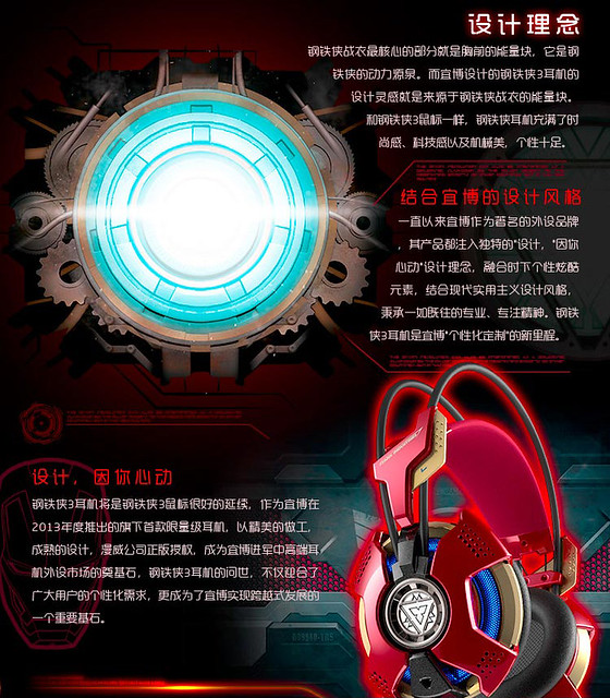 中國大陸廠商「E-3LUE 宜博」取得MARVEL 授權,推出了一系列以「鋼鐵人」造型為發想的3C 週邊產品之後,最新推出了一款頭戴式全罩抗噪耳機,使用最新「鋼鐵人馬克42」的外型作為設計概念,以此設計了充滿機械感的全罩式耳機,整體與線控裝置皆採用了「紅×金」的“低調東尼”配色,加上驅動「鋼鐵人」的動力來源「弧形反應爐」造型,會隨著不同的狀況發出不同顏色的光芒!這樣造型十足的耳機搭配上一隻限定款“DORA”手錶,絕對是各位「鋼鐵人」粉絲必備品!